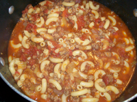 Add macaroni to other cooked ingredients. Mix thoroughly.